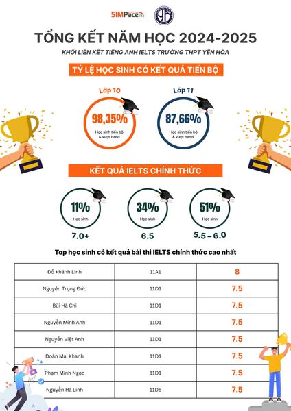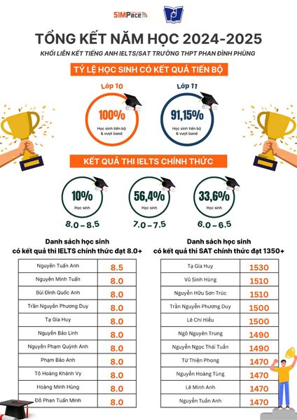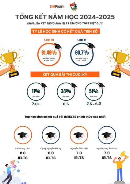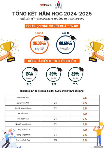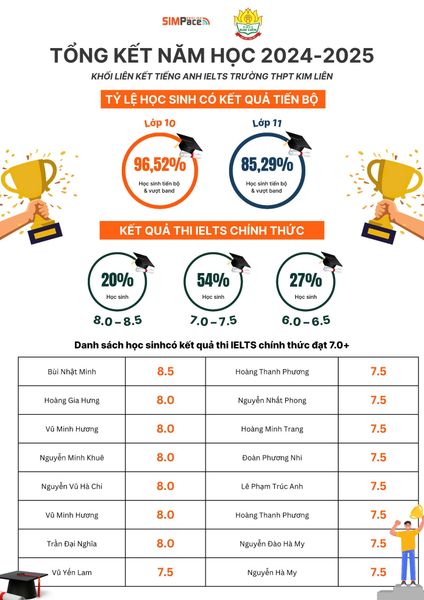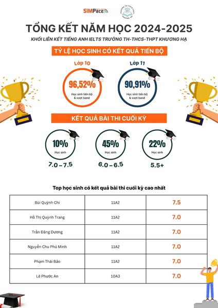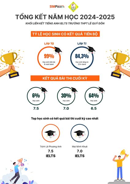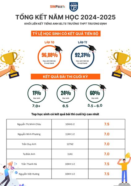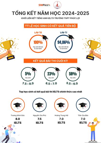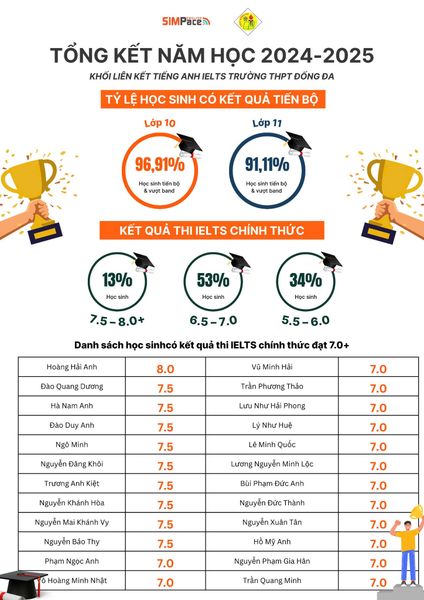 Không chỉ là những con số ấn tượng, thành tích này còn là kết quả của sự nỗ lực không ngừng nghỉ, tinh thần kỷ luật học thuật và khát vọng chinh phục chuẩn đầu ra toàn cầu của các em học sinh tại 13 trường THPT liên kết đào tạo và giảng dạy tiếng Anh IELTS với SIMPace. Học viện Anh ngữ SIMPace tự hào được đồng hành cùng các em, tiếp thêm động lực và chiến lược để các bạn tỏa sáng trên hành trình IELTS – một bước đệm vững chắc cho tương lai rộng mở phía trước.