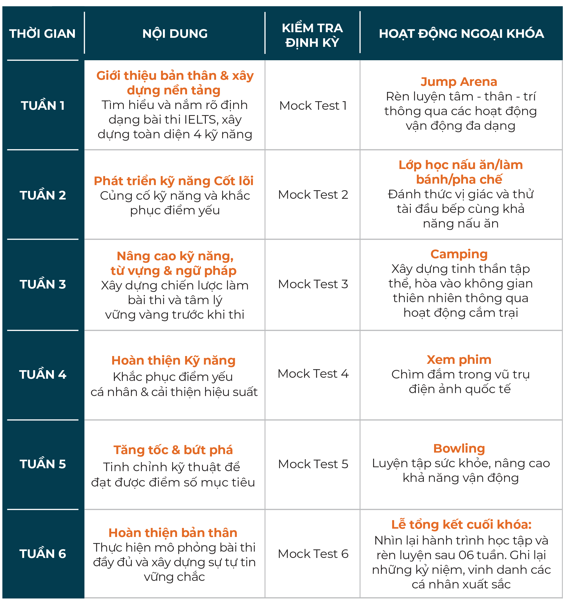 Khóa học "cường độ cao" IELTS Summer được thiết kế đặc biệt phù hợp với học viên có mục tiêu đạt điểm IELTS mong muôn trong khoảng thời gian 06 tuần nghỉ hè.